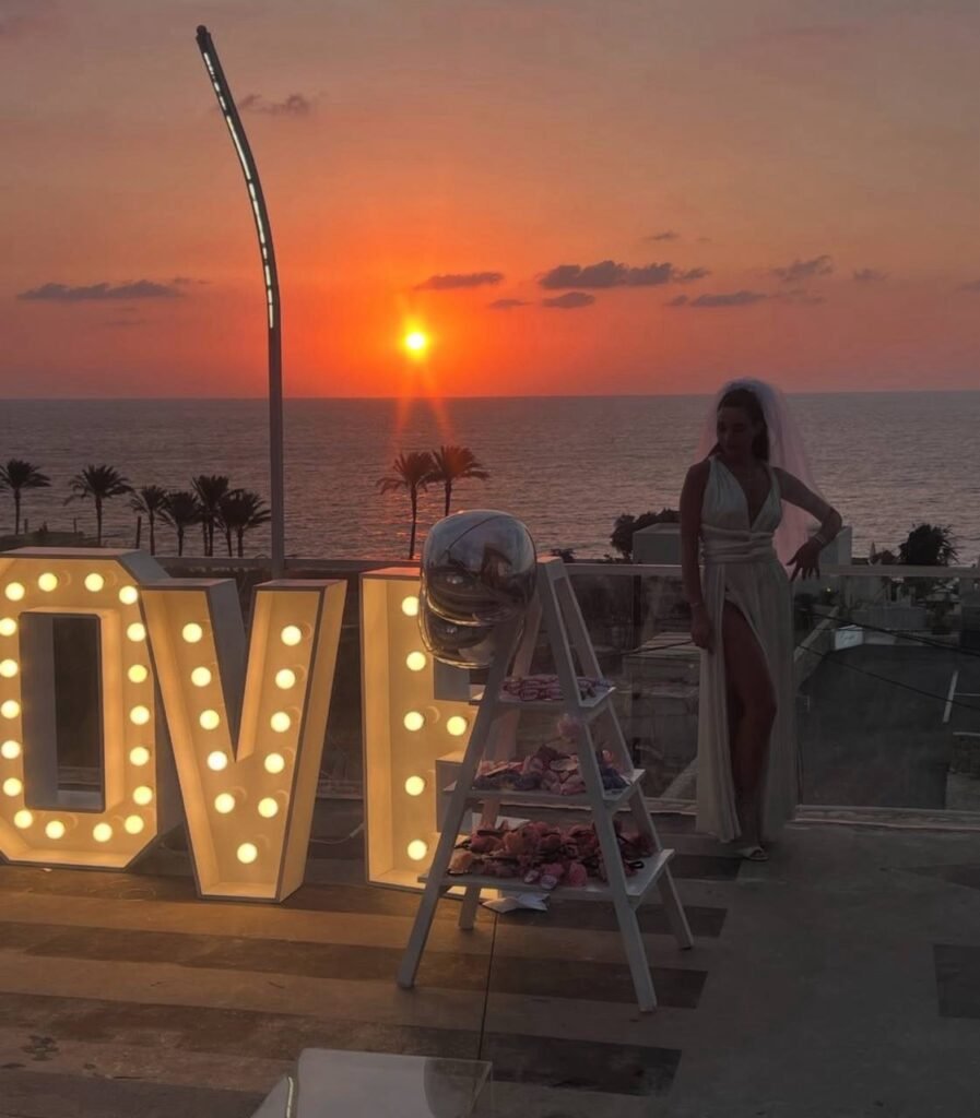 أقيمت المناسبة في مكان خاص مزين بديكورات أنيقة طغت عليها الورود الزهرية والبنفسجية، مما أضفى لمسة رومانسية ودافئة على الأجواء، وعبّرت عن شخصية داليدا الرقيقة والمرحة في آنٍ معاً.