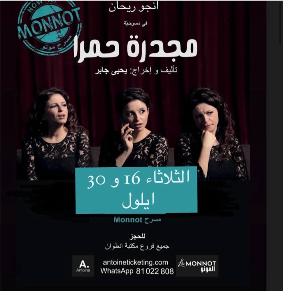 أعلنت الممثلة أنجو ريحان عبر حسابها على إنستغرام أن جمهور المسرح على موعد جديد مع مسرحيتها الشهيرة “مجدرة حمرا” يوم السبت 6 أيلول عند الساعة 8:30 مساءً ضمن فعاليات مهرجان حرش بيروت 2025، والدعوة عامة ومجانية.